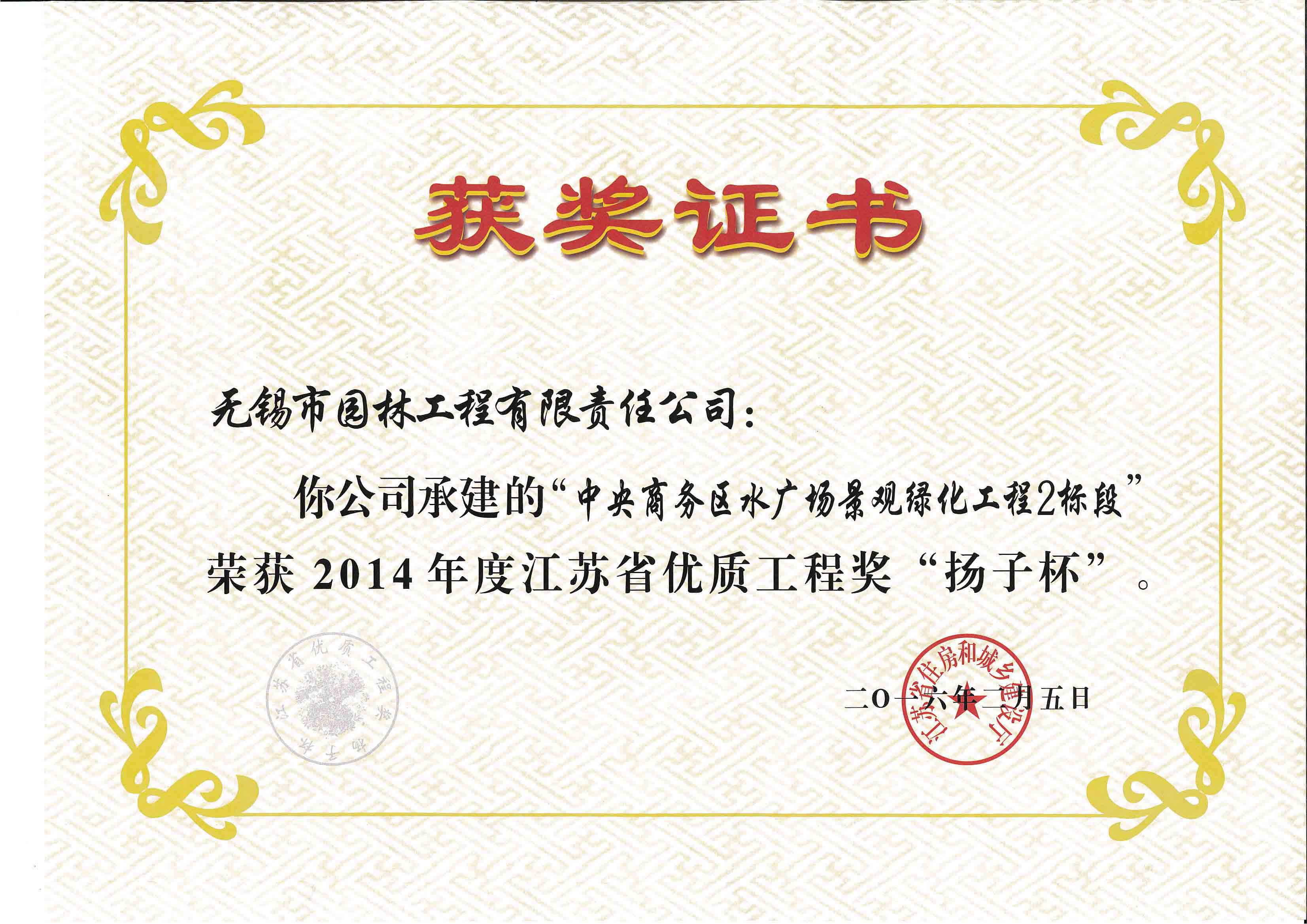 2014揚(yáng)子杯——中央商務(wù)區(qū)水廣場(chǎng)景觀綠化工程2標(biāo)段