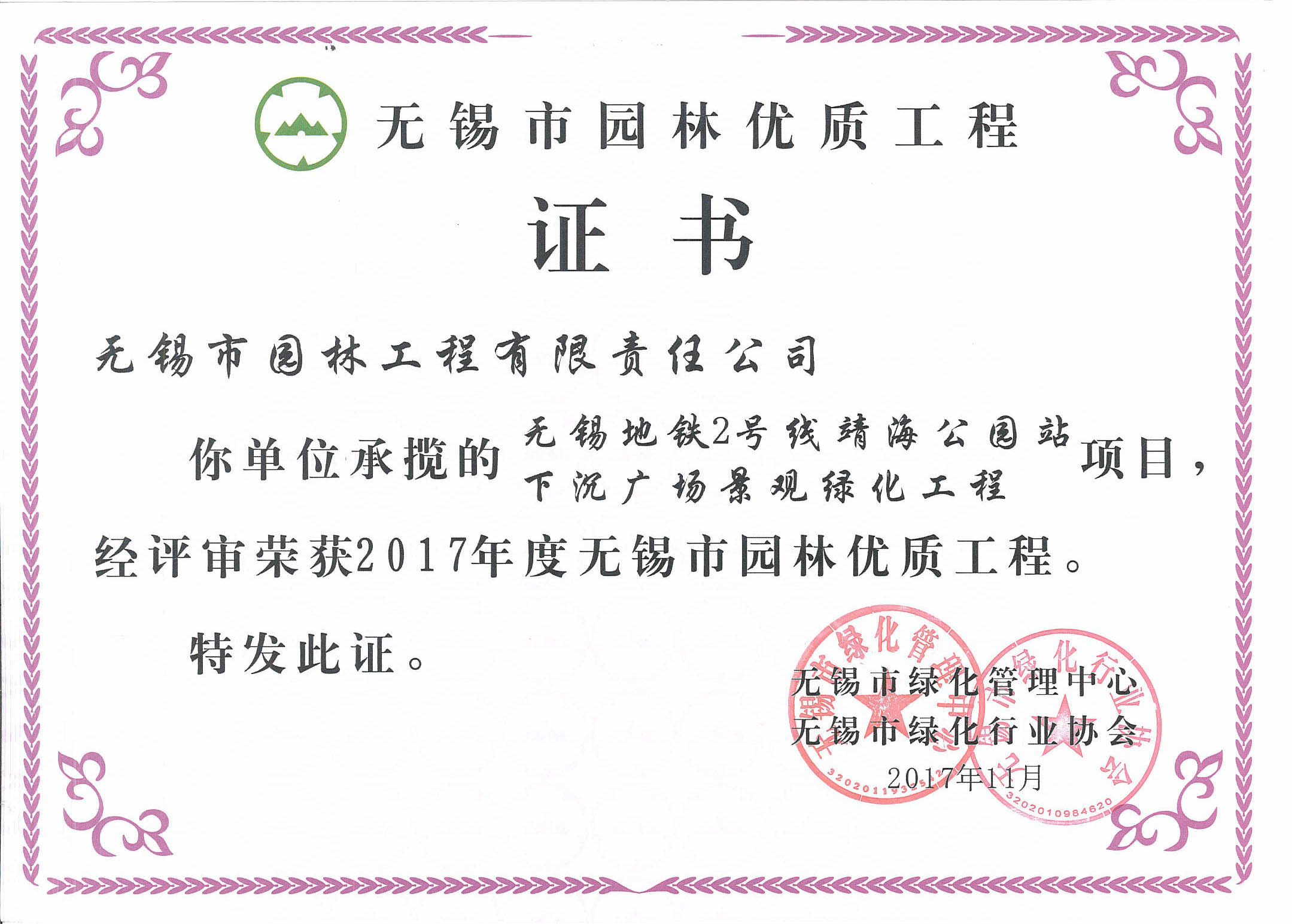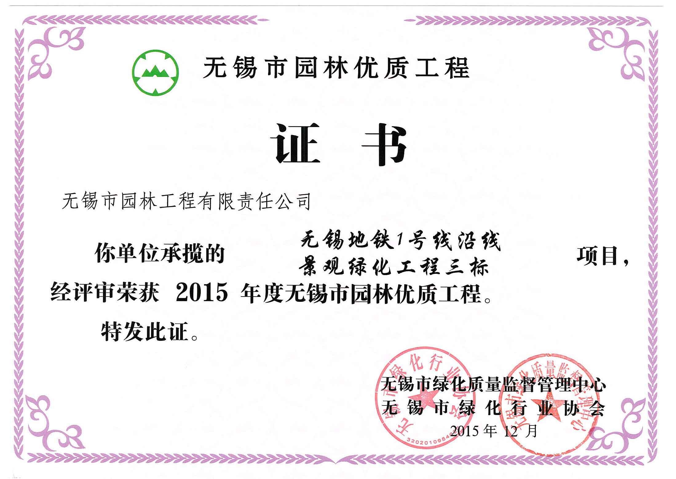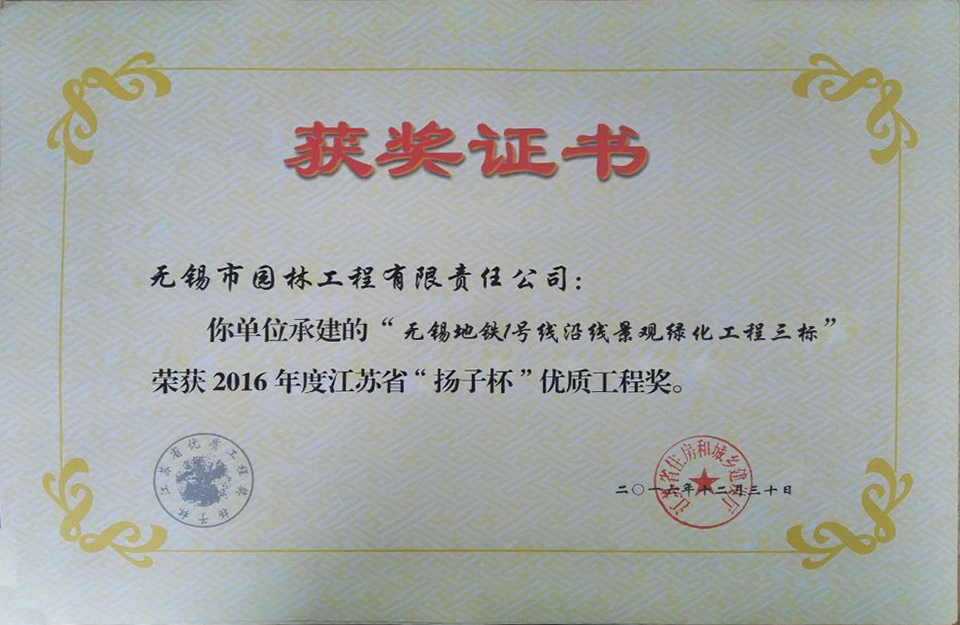 2016揚(yáng)子杯——無錫地鐵1號(hào)線沿線景觀綠化工程三標(biāo)