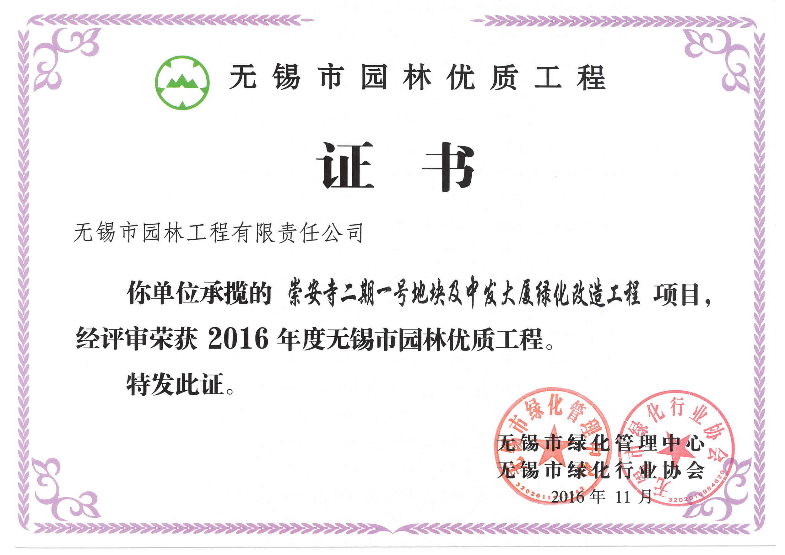 2017“揚(yáng)子杯”—崇安寺二期一號(hào)地塊及中發(fā)大廈地塊景觀綠化工程