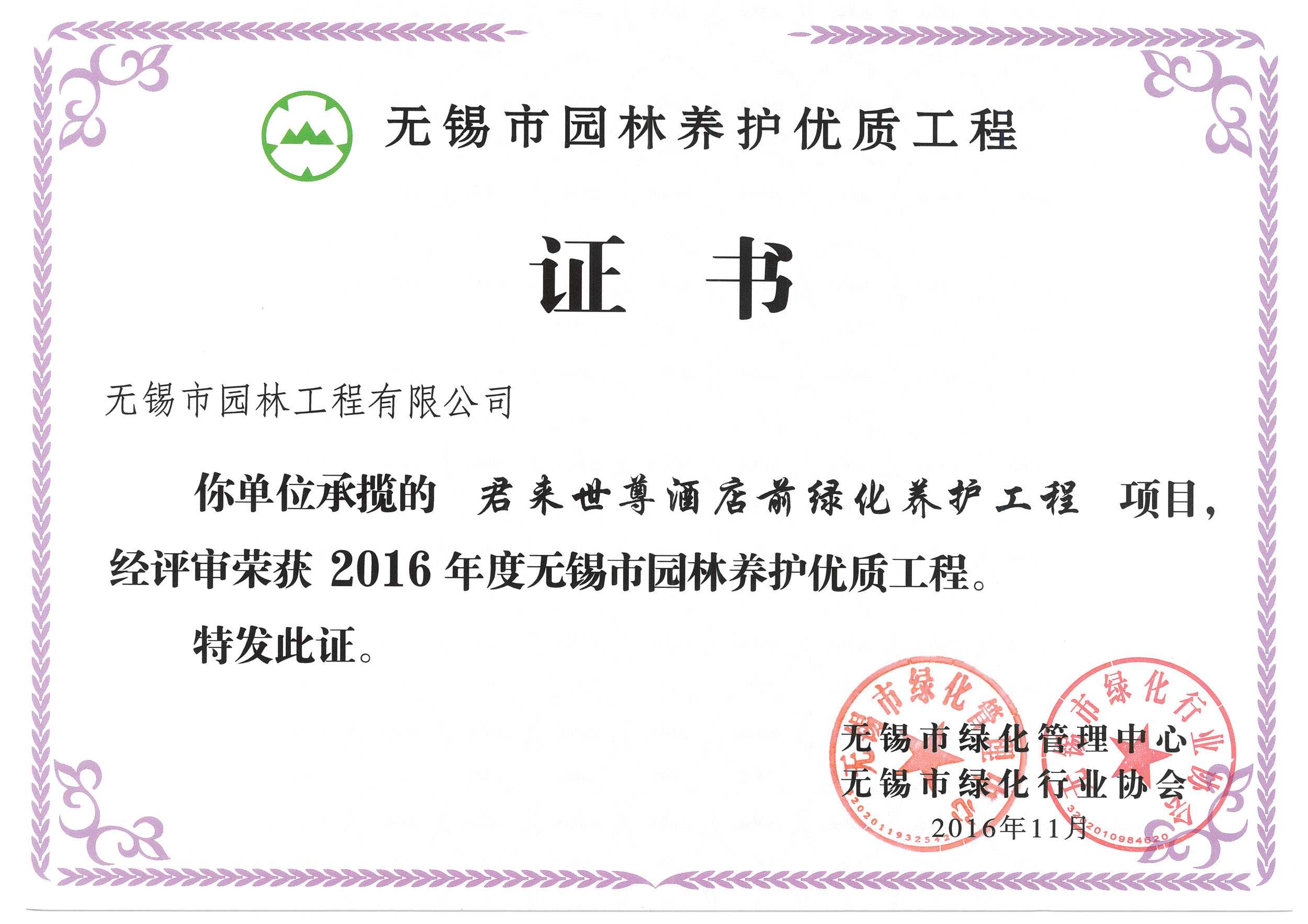 2015年度無錫市園林綠化明星企業(yè)