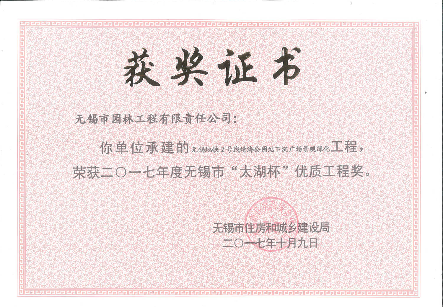2017年度無錫市太湖杯優(yōu)質(zhì)工程