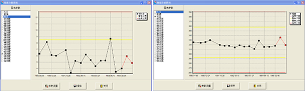 圖三:軟件的預(yù)警功能,不僅能給出當(dāng)前測試結(jié)果所處范圍,同時能夠通過模糊計算理論,給出下次樣品的數(shù)據(jù)。