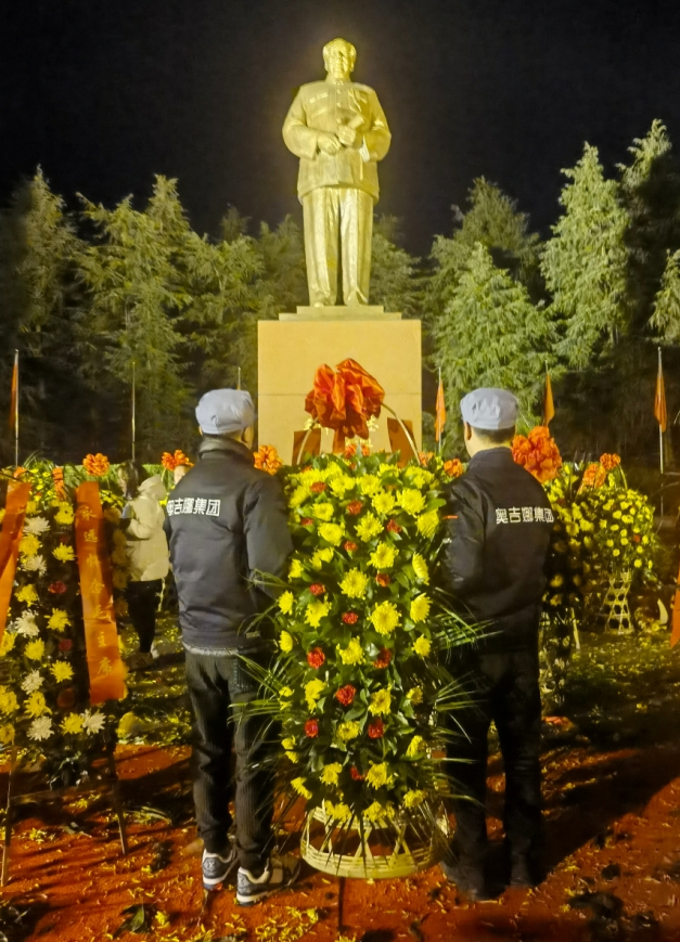 奧吉娜集團(tuán)總裁魏國(guó)平博士特選派員工赴韶山?jīng)_,代表奧吉娜集團(tuán)向紀(jì)念毛澤東銅像敬獻(xiàn)花籃祭拜偉人,表達(dá)奧吉娜人對(duì)這位偉人最崇高的敬意和最深切的懷念。