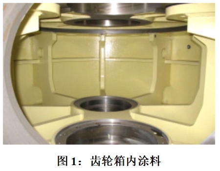 涂料主要用于齒輪箱外部和內(nèi)部的保護(hù)。齒輪箱外部涂料的作用是抵御惡劣環(huán)境對(duì)齒輪箱造成的腐蝕、鹽蝕等危害,內(nèi)涂料用于齒輪箱儲(chǔ)存和運(yùn)輸過(guò)程中防腐蝕,并且內(nèi)涂料能夠束縛加工過(guò)程中留在齒輪箱中的鐵屑和沙粒。而內(nèi)涂料的選擇和使用還應(yīng)該注意什么呢??jī)?nèi)涂料作為齒輪箱的內(nèi)涂層保護(hù)(見(jiàn)圖1),不可避免的與齒輪油接觸,所以?xún)?nèi)涂料和齒輪油的兼容性就顯得非常重要。