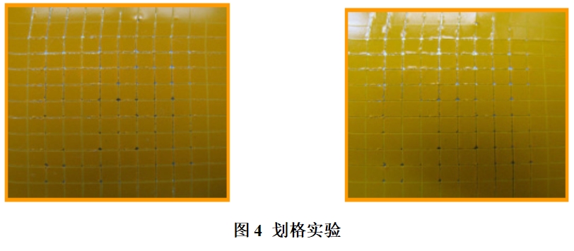 圖4為劃格實(shí)驗(yàn)的圖片。在膠帶粘貼前后,如果測(cè)試板無(wú)變化,說(shuō)明潤(rùn)滑油沒(méi)有對(duì)涂料產(chǎn)生不良影響。