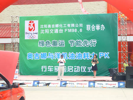 奧運(yùn)倒計時一周年之際,由沈陽奧吉娜化工有限公司與沈陽交通臺聯(lián)合舉辦的“綠色奧運(yùn)、節(jié)能先行,奧吉娜與洋機(jī)油萬里油耗大PK”行車實(shí)驗(yàn)拉開了序幕,2007的8月24日上午,舉行了啟動儀式。